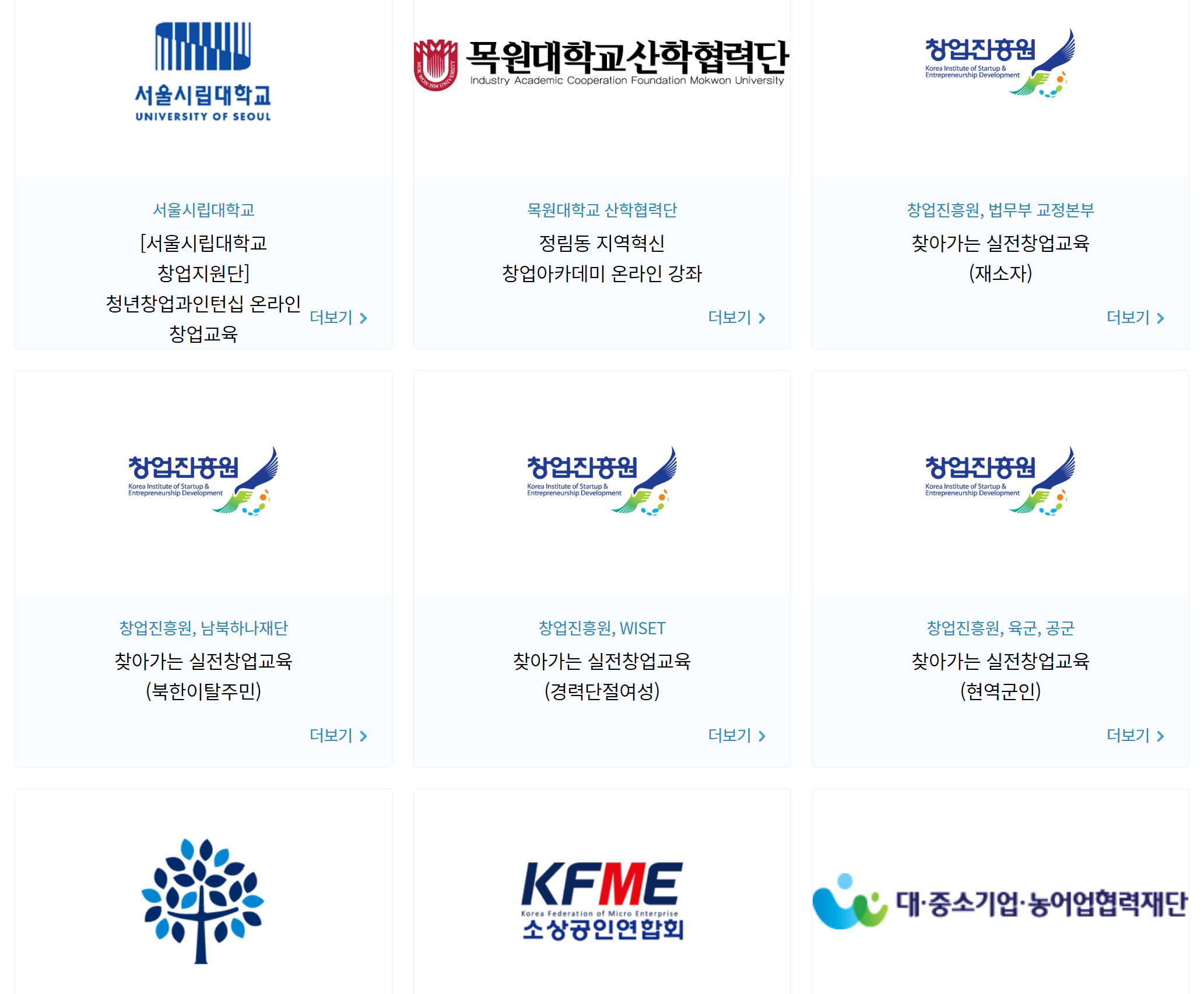 대학 등 기관에서 제공하는 강좌와 창업진흥원의 여러 창업관련 교육을 연계해서 들으실 수 있습니다.