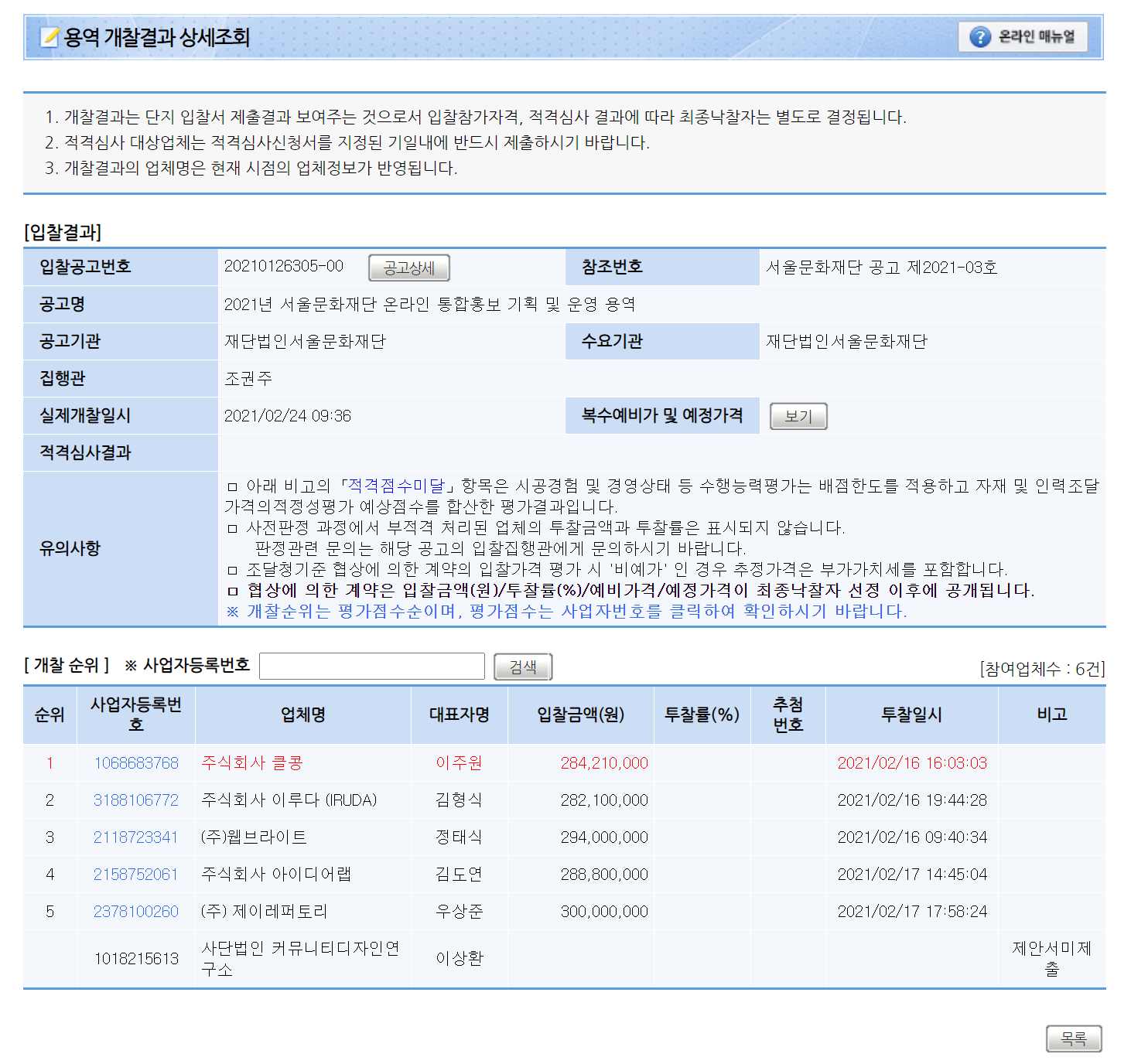 여러가지 요인이 작용했을텐데요, 일단 사업을 준비하려면 해당사업의 기존 수행업체 정보도 파악하는것이 중요하겠죠.
