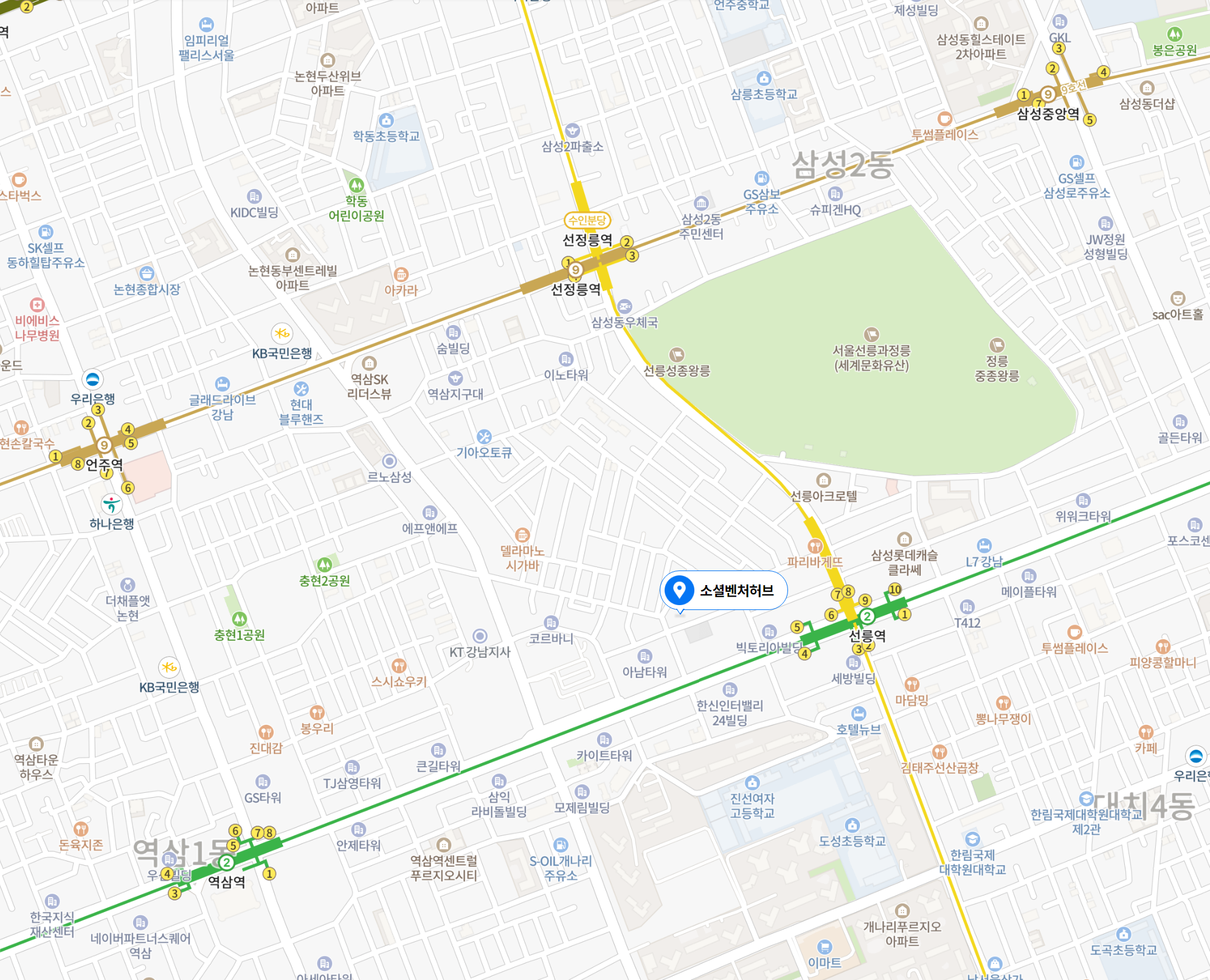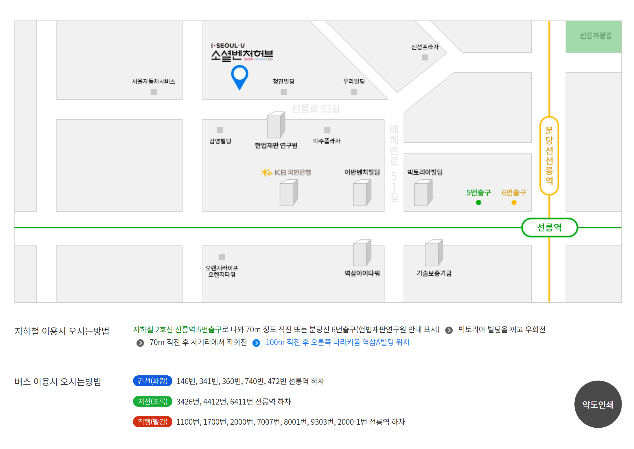 근무지는 선릉(서울 강남구 역삼동)의 역삼A빌딩 소셜벤처허브 본사입니다.