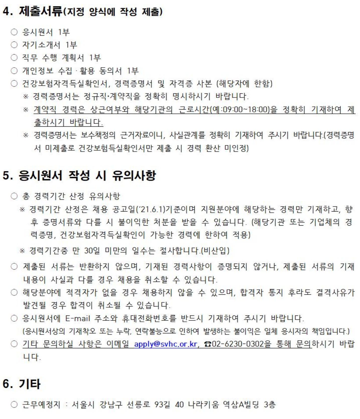 공고내용(채용분야 및 지원자격, 전형, 제출서류)