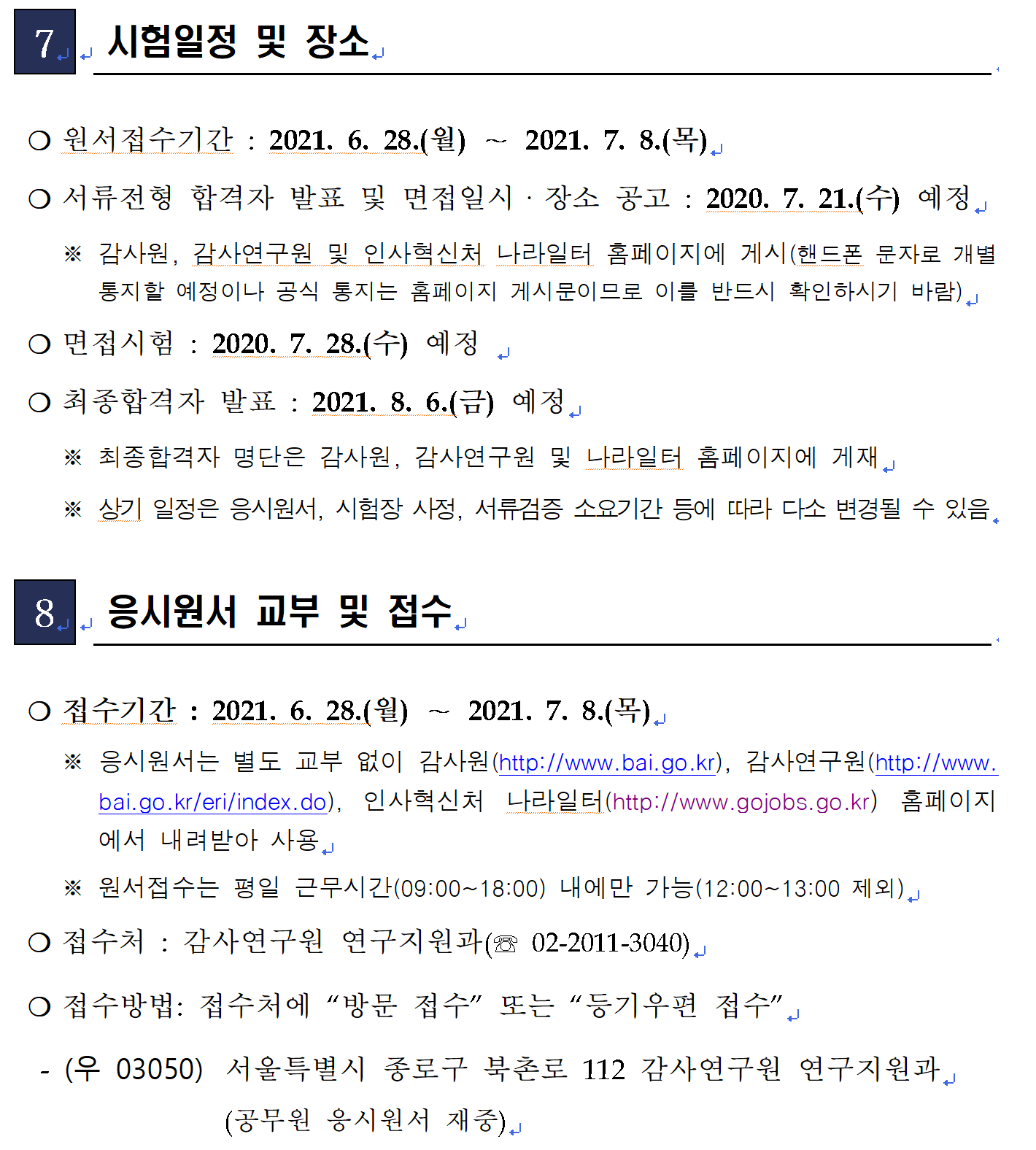 원서접수는 2021년 7월 8일까지, 면접은 7월 28일, 최종합격자 발표는 8월 6일 예정입니다.