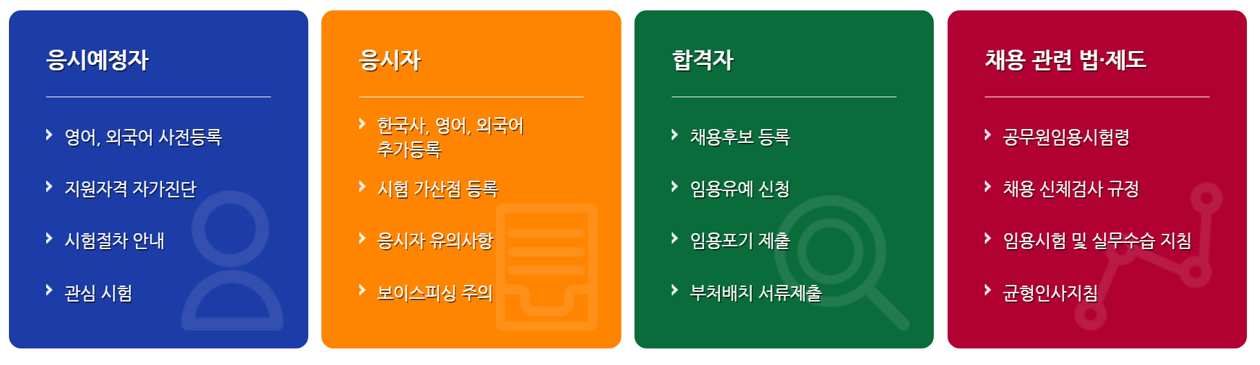 응시 준비부터 합격 후 채용후보 등록까지 한곳에서 처리할 수 있습니다.