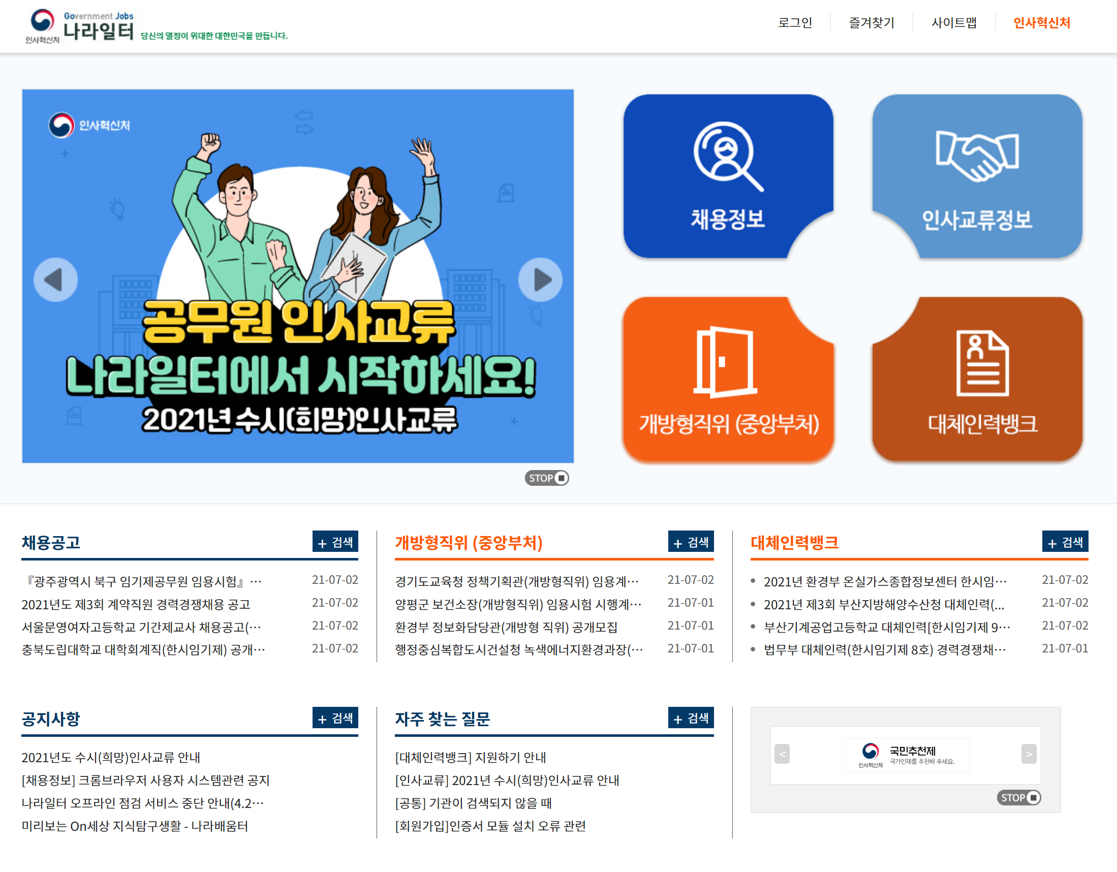 인사혁신처에서 운영하는 '나라일터'입니다.